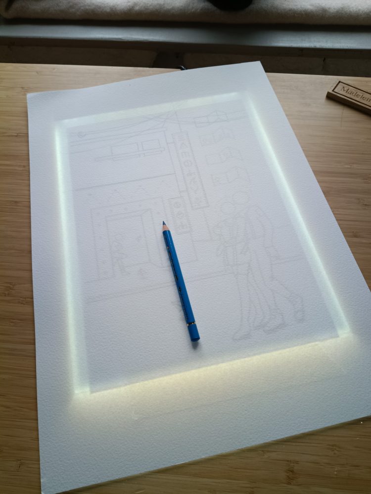 I’m part of an art group that meets weekly at a local library. When I moved to Dorset, I didn’t know any creative people, and missed the camaraderie of the gallery in Banbury. Having a time to meet with others and draw together is valuable to me, it helps to feel part of a group of people who love making art. There are no classes or critiques, and everyone works on their own thing. The library occasionally puts on exhibitions of the members works, and this time, the theme was Science Fiction. It took a while to come up with an idea, as it’s not a genre I usually explore in art. I enjoy reading about it from time to time, but it doesn’t translate into painting ideas for me, as I’m not interested in machinery, robots, aliens etc.